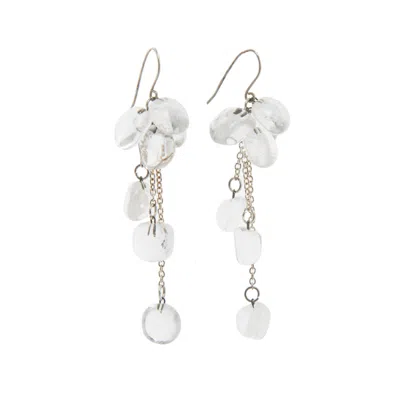 Women's Neutrals / Silver Whispers Of Rain – Long Cluster Earrings