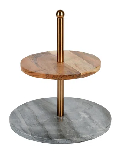 California Designs Grey Marble And Acacia Wood 2 Tier Server In Multi