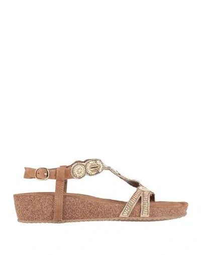 Woman Sandals Brown Size 9 Textile Fibers, Leather