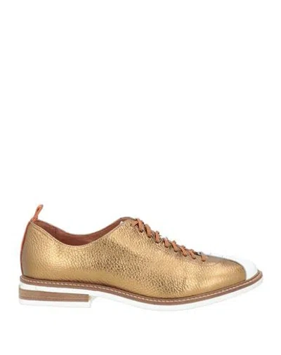 Woman Lace-up Shoes Bronze Size 7 Leather In Yellow
