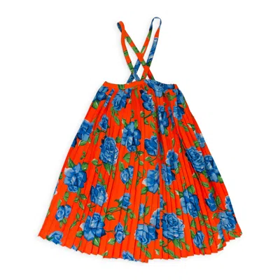 Neon Orange Pleated Trapeze Mini Dress