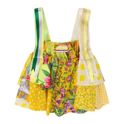 Yellow Ruffled Patchwork Ribbon Blouse In Multi