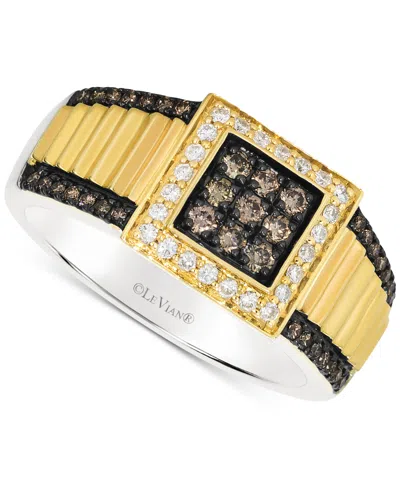Chocolatier Men's Chocolate Diamond & Vanilla Diamond Square Cluster Ribbed Ring (1/2 Ct. T.w.) In 1 In Gold