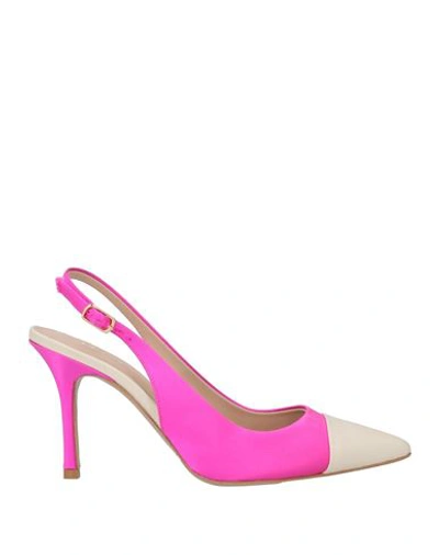 Woman Pumps Fuchsia Size 6 Textile Fibers, Leather In Pink
