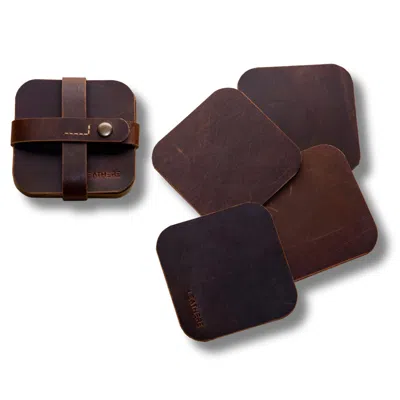 Brown Leather Coffee Coaster Set Of 4— Hialeah
