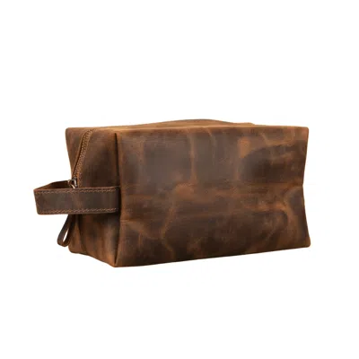 Men's Handmade Leather Makeup Bag - Medium Brown- Minneapolis