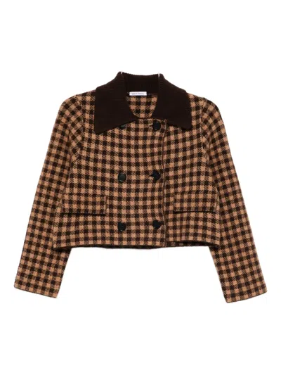 Double-breasted Checked Jacket In Brown