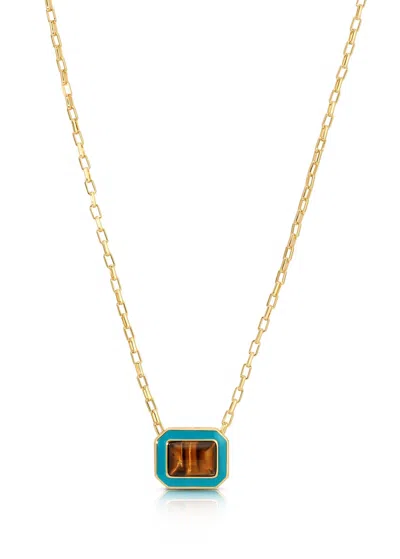 Women's Lamill Statement Square Enamel Necklace In Tiger's Eye/turquoise Enamel In Multi
