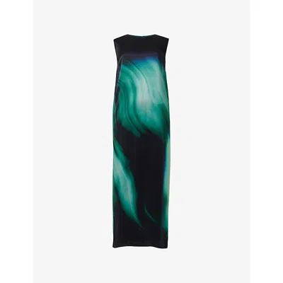 Womens Jacquard-print Relaxed-fit Woven Midi Dress In Green