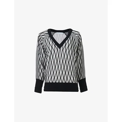 Womens Black Mesh-sleeve Knitted Jumper Xl