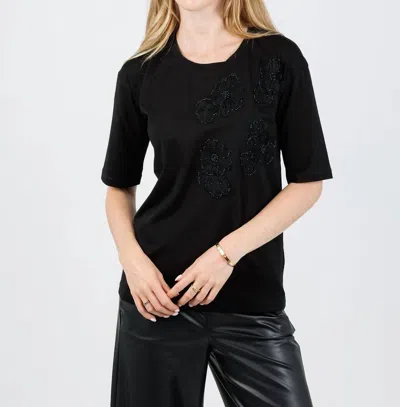 Ines Floral Bead Detail Short Sleeve Tee In Black