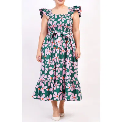 Mindy Shirred Midi Dress In Mod Geo In Multi