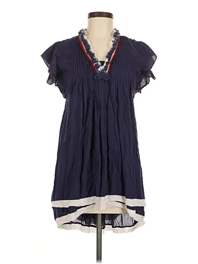 Pre-owned Swimsuit Top Blue Solid Pattern Swimwear