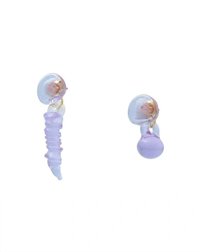 Water Drops Earrings Lilac Woman Earrings Lilac Size - Borosilicate Glass, Brass In Purple
