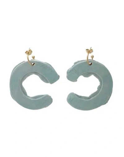 C Hoops Blue Woman Earrings Light Green Size - Clay, Brass, Enamel