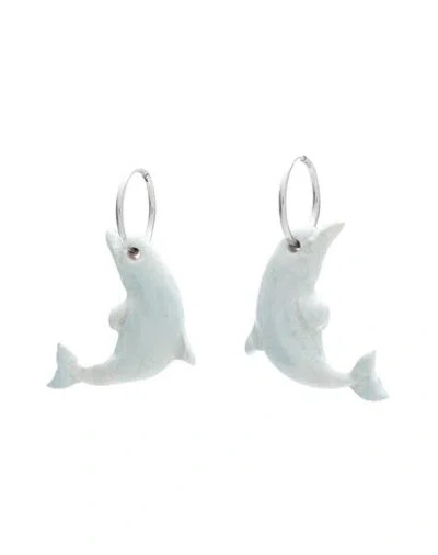 Dolphin Hoops Blue Woman Earrings Sky Blue Size - Clay, Brass, Enamel