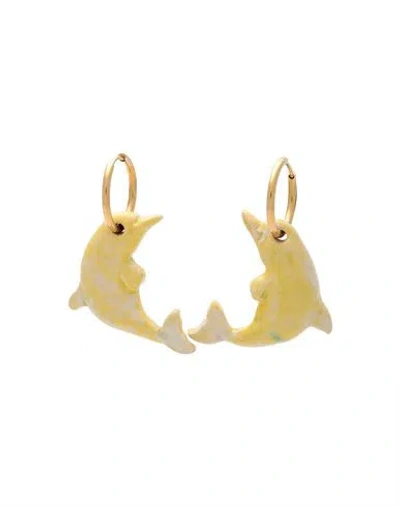 Dolphin Hoops Yellow Woman Earrings Pastel Yellow Size - Clay, Brass, Enamel