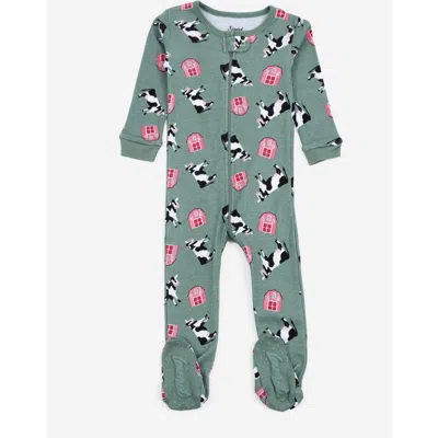Kids Footed Solid Cotton Matching Family Pajamas In Green