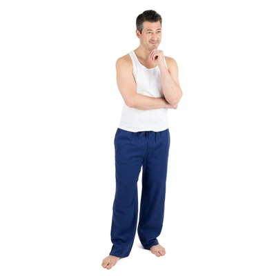 Mens Two Piece Cotton Pajamas Boho Solid Color In Blue