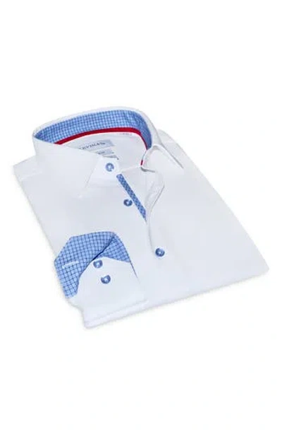 Contemporary Fit Solid Cotton Dress Shirt In White/black