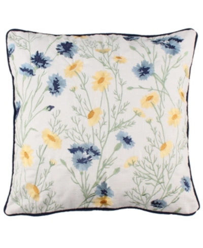 Linnea Floral Embroidered Decorative Pillow, 18" X 18" In White
