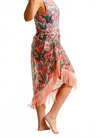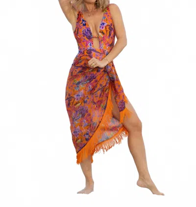 Fringed Pareo In Orchid Rush In Brown