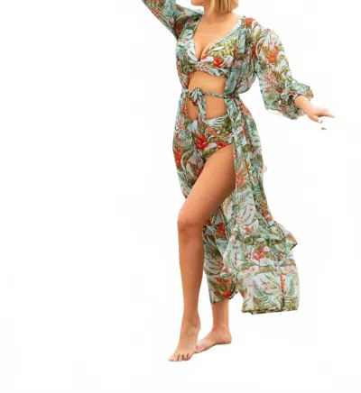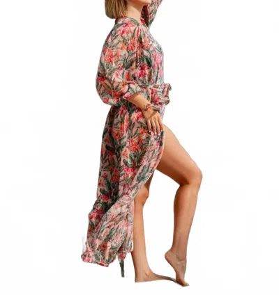 Long Sleeve Robe Cover Up In Heliconia In Multi