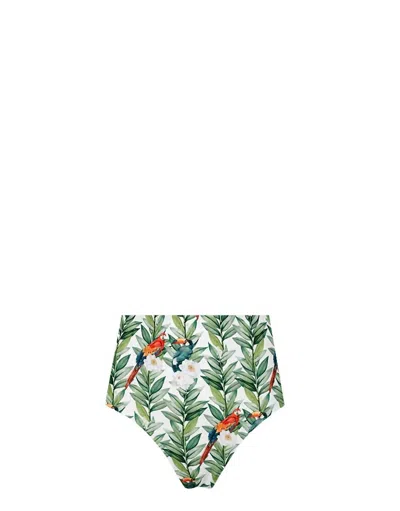Women's Reversible Compression High Waist Bikini Bottom In Parrots In Bloom + Dots In Green