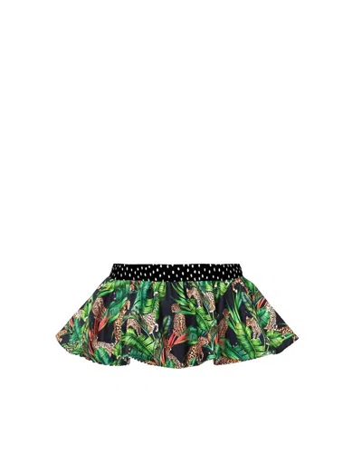 Women's Reversible Ruffle Belt In Midnight Jungle + Black & White Dots In Green