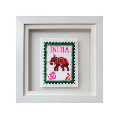 Gold India Postage Stamp Artwork In White