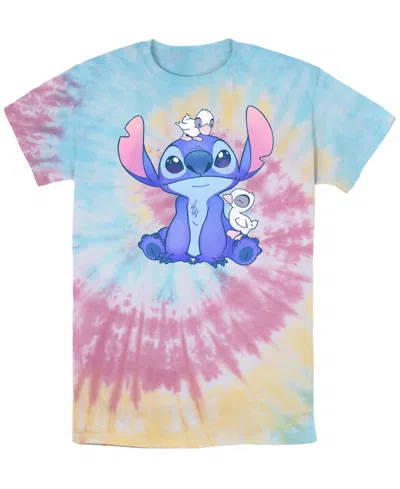 Men's Stitch Flower Set Short Sleeve Tie Dye T-shirt In Blue Pink