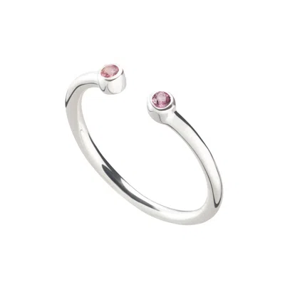 Women's Silver / Orange October Birthstone Open Style Ring - Pink Tourmaline In Multi