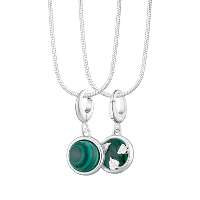 Women's Sterling Silver Malachite Healing Stone Necklace With Round Snake Chain - Healing Charm Neck
