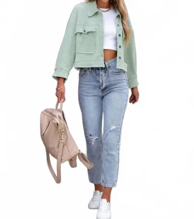 Waffle Crop Jacket In Mint Green In Black