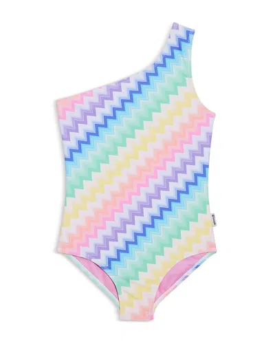 Girls' One Shoulder Geometric One Piece Swimsuit - Little Kid, Big Kid In Multi