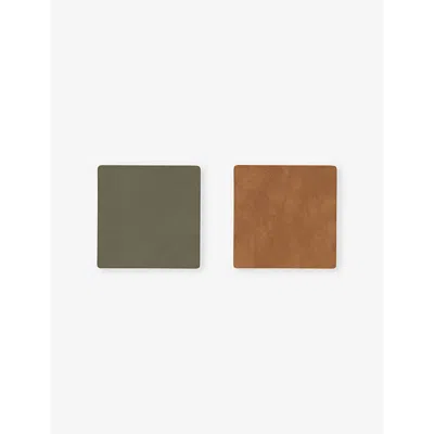Nupo Double Leather Coaster 10cm X 10cm Army Green And Nature