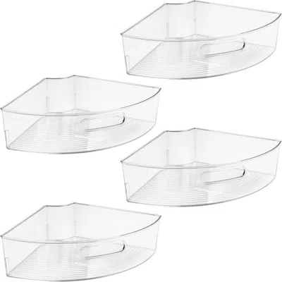 Lazy Susan 1/4 Wedge Bin With Handle, Set Of 4, Clear, Made In Transparent