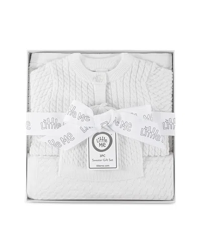 Boys' Blue Cable Sweater, Hat & Blanket Gift Box - Baby In Gray