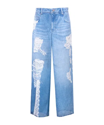 Liu Jo Laced Distressed Jeans In Blue