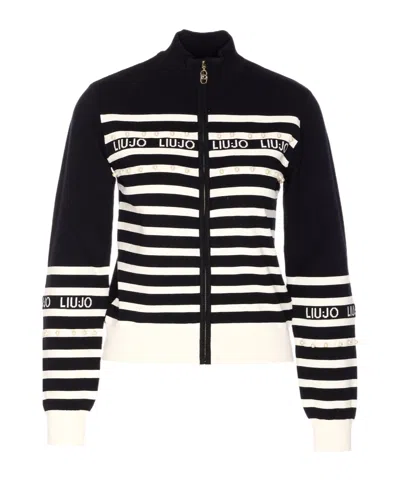Liu Jo Striped Cardigan In Black