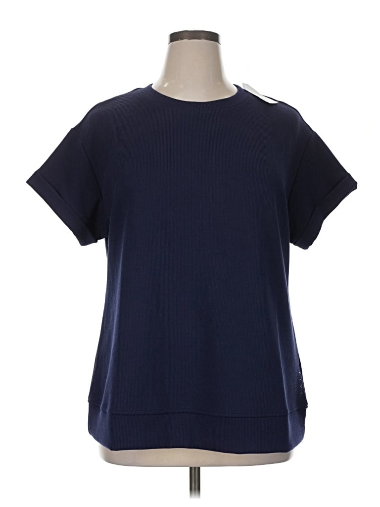 Short Sleeve Top Blue Crew Neck Tops