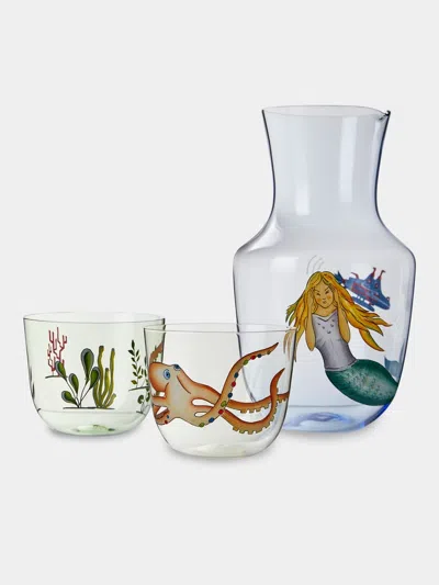 Persian Flowers Hand-blown Crystal Water Pitcher In Multi