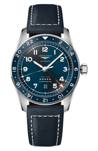 Men's Swiss Automatic Spirit Zulu Time Blue Leather Strap Watch 42mm
