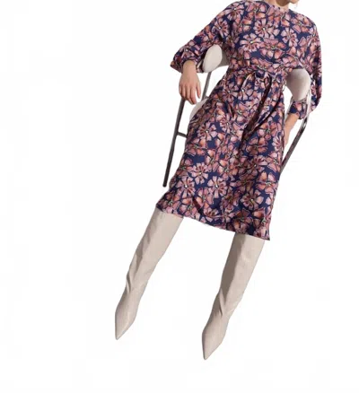 Maeve Floral Midi Dress In Navy & Pink In Animal Print