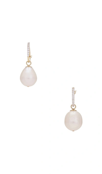Teardrop Huggie Earrings In Pearl & Yellow Gold