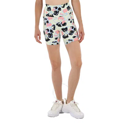Ladies Hibiscus Print Hi-fold Bike Shorts In Multi