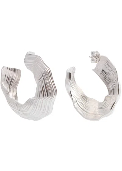 Abluvio Ridge Hoop Sterling Silver Earrings In White