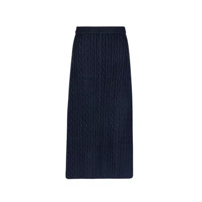 Women's Blue Cable Knit Midi Skirt Navy In Black
