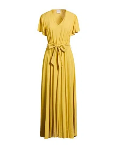 Woman Maxi Dress Yellow Size 10 Viscose, Linen