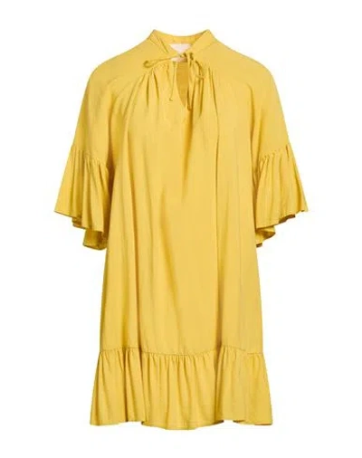 Woman Mini Dress Yellow Size 4 Viscose, Linen
